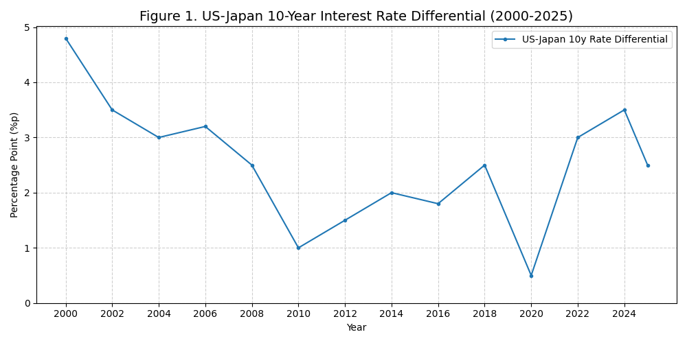 As illustrated in Figure 1, the US-Japan 10-year interest rate spread (US-Japan 10y Rate Differential) has recently narrowed, yet the structural difference remains considerable, tempting global investors. The market expects Takaichi’s administration to effectively delay any possibility of a BoJ exit from its easing policy.