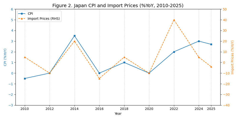 | Import Prices | Shows a sharp spike and rebound, closely preceding CPI rises | Demonstrates that a renewed weak yen (driving import prices) will inevitably lead to increased domestic price burdens. |